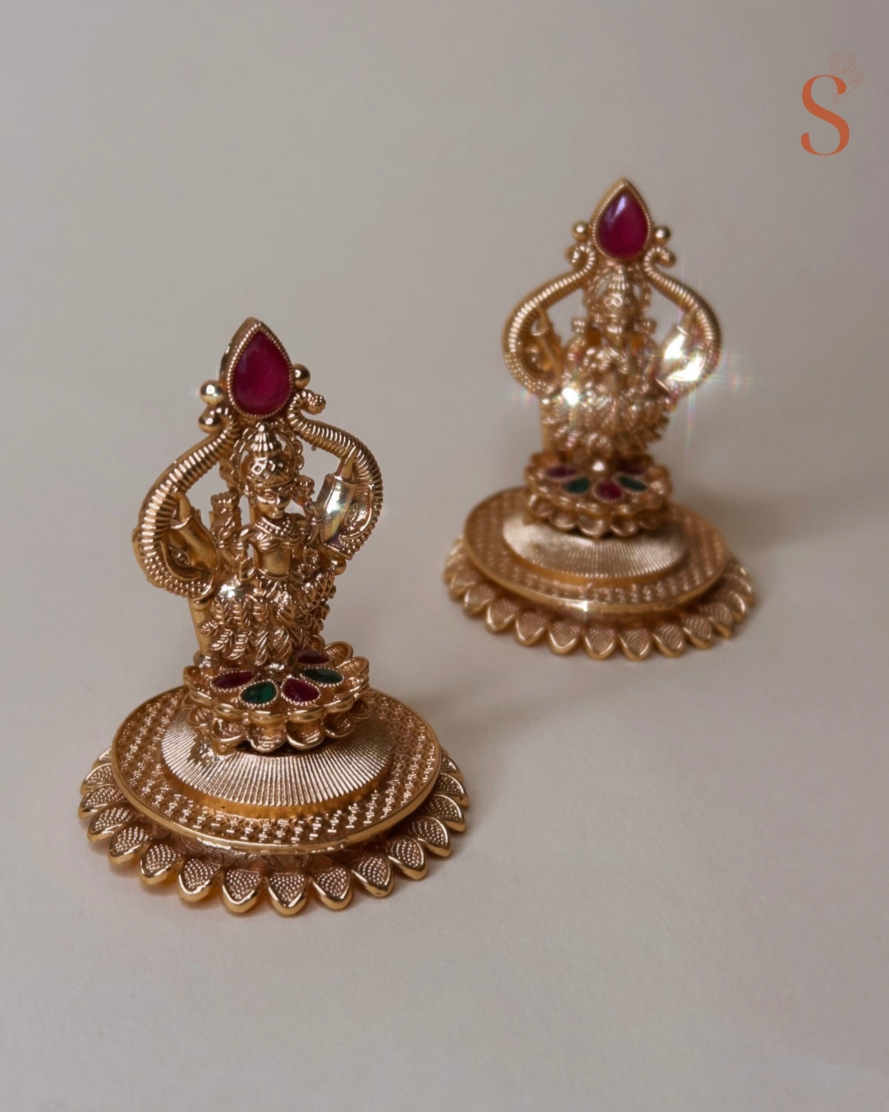 Wierookhouder met godin Lakshmi en rood/groene stenen